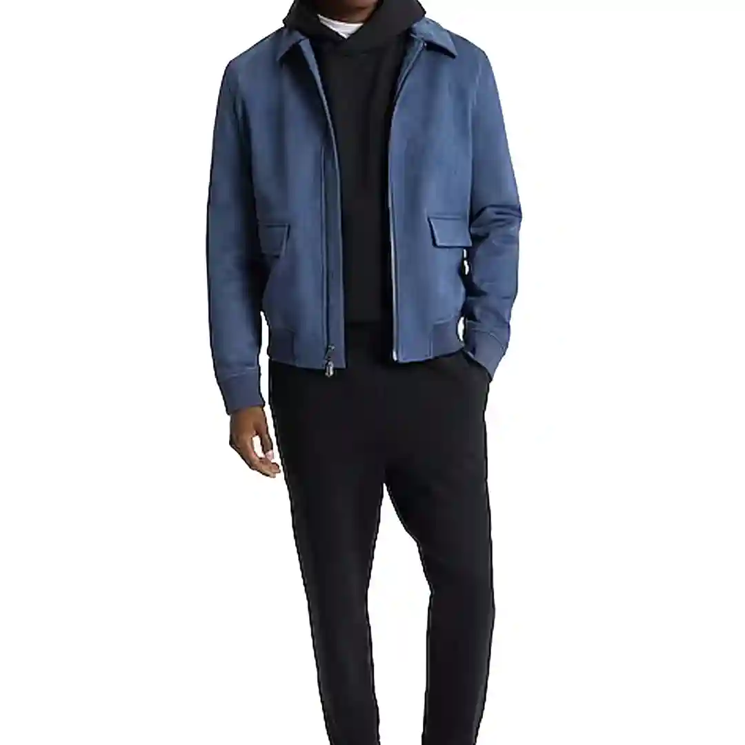 The Men’s Blue Faux Suede Leather Bomber Jacket by Leather Mate US combines the traditional bomber jacket design with a contemporary twist, bringing together style and function. Crafted from high-quality faux suede, this jacket promises both comfort and durability, making it a wardrobe staple for the modern man. The faux suede fabric is soft to the touch and offers a stylish alternative to traditional leather, while maintaining a durable and versatile look.