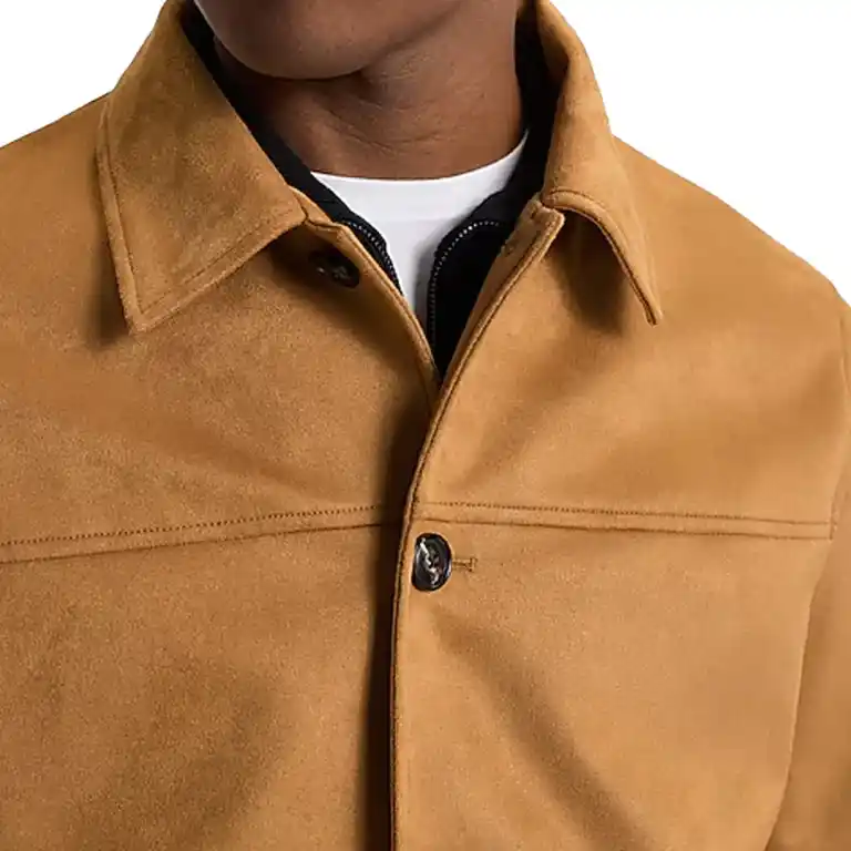 The jacket is crafted from high-quality faux suede, offering the luxurious look and feel of genuine suede with added durability and ease of care. -