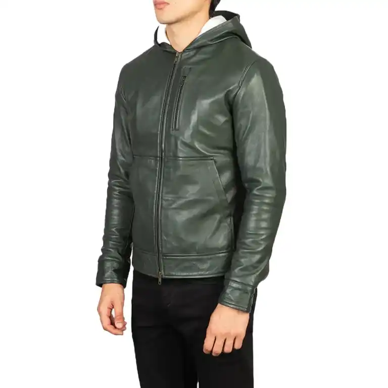 Whether you’re heading to a casual gathering or exploring the city, the Baston Green Hooded Leather Bomber Jacket is a versatile piece that enhances your look while providing comfort and functionality.